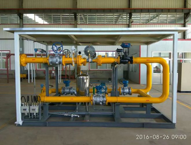 城市門站調(diào)壓撬是對天然氣長輸管路進(jìn)入城市前需要在城市門站將高壓管路氣體降壓和計量的一種裝置。我公司生產(chǎn)的城市門站調(diào)壓撬可根據(jù)客戶要求量身定制。調(diào)壓器、切斷閥、放散閥、流量計等均采用國內(nèi)外優(yōu)質(zhì)名牌,以保證設(shè)備的高質(zhì)量、高精度和高可靠性。產(chǎn)品采用一路調(diào)壓、一路備用,緊急切斷閥與調(diào)壓器的切斷閥雙重保險,從而可靠地保證了下游管線的安全。設(shè)有高精度過濾器。壓力設(shè)定簡單,調(diào)壓精確穩(wěn)定可靠。